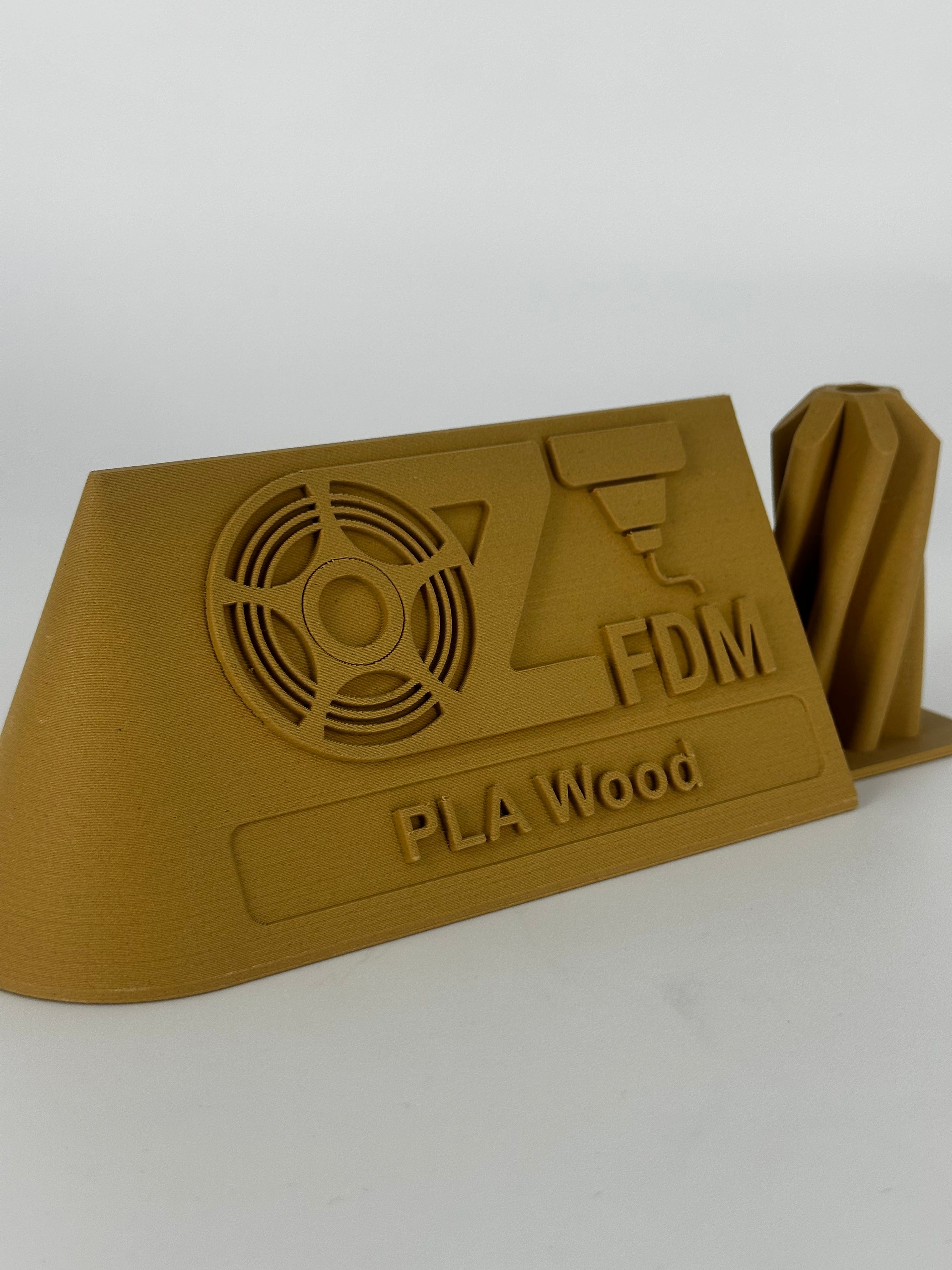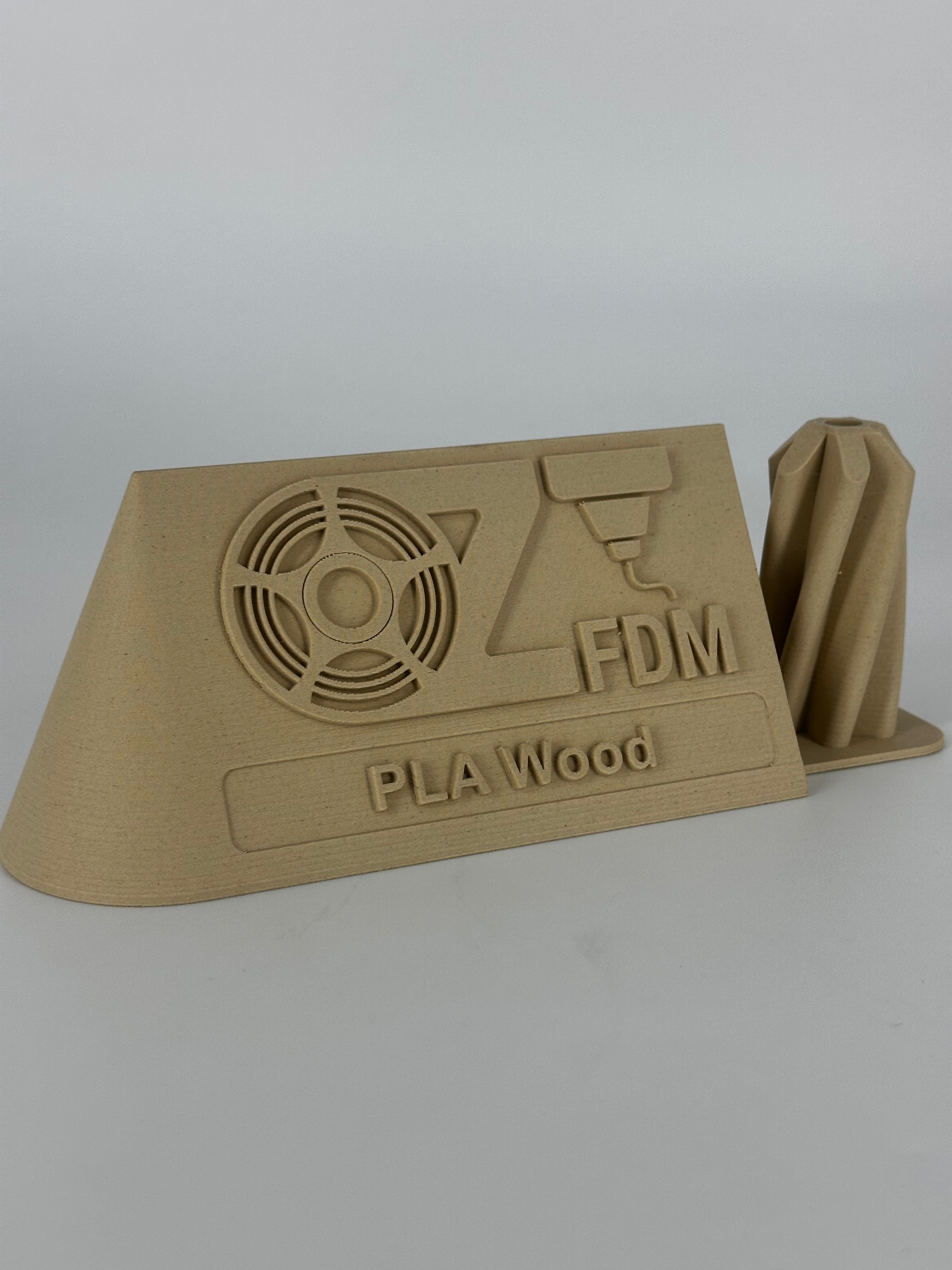 - PLA Wood is blended with fine wood fibres to produce a warm, matte surface that closely resembles real timber.